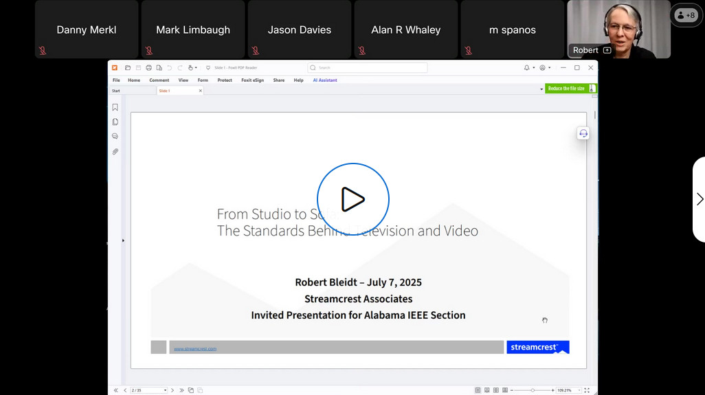 I’m the chair of the local Communcations Society section in IEEE, and I gave a tutorial presentation on video and TV systems for the Alabama section in 2025: